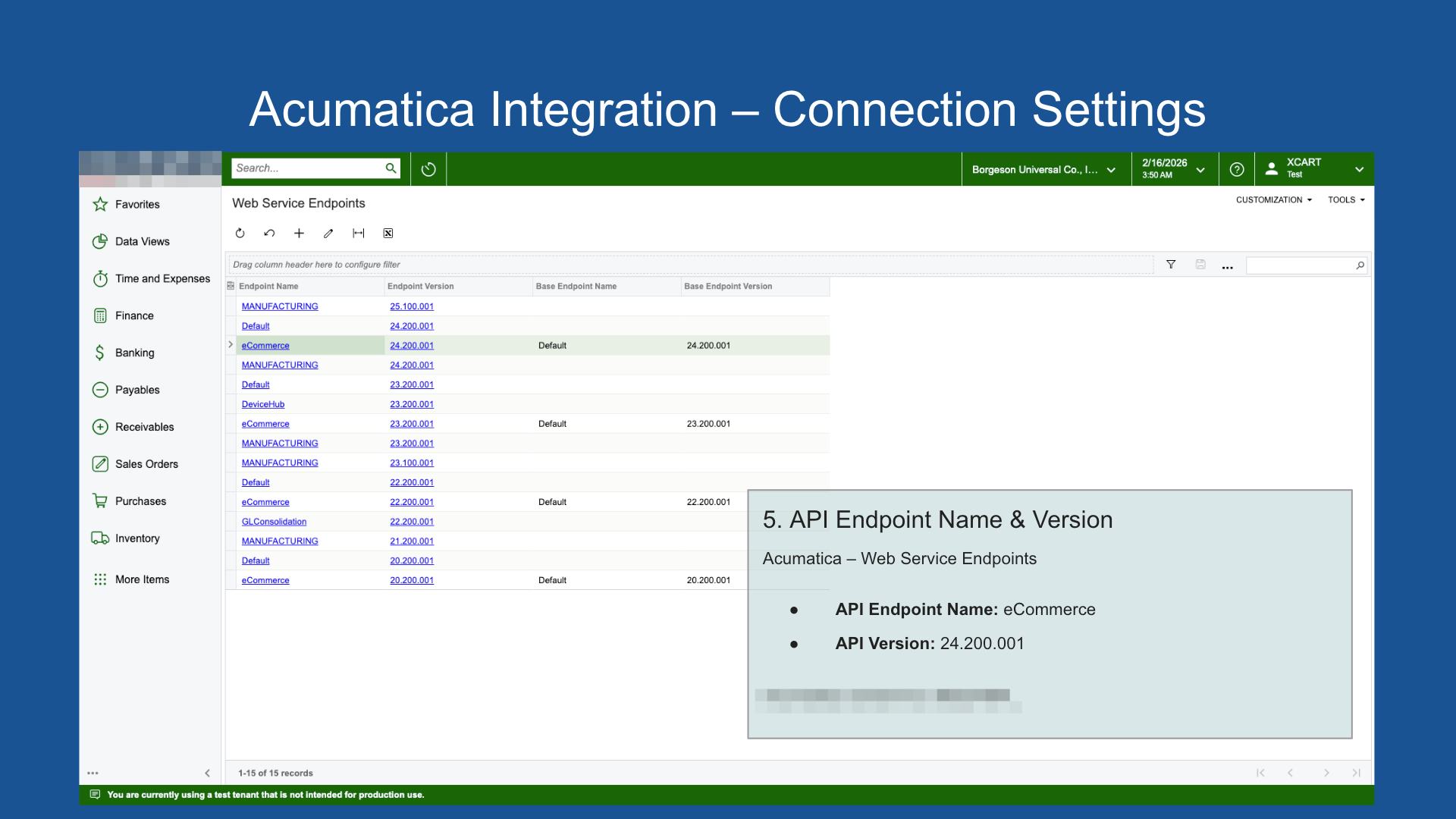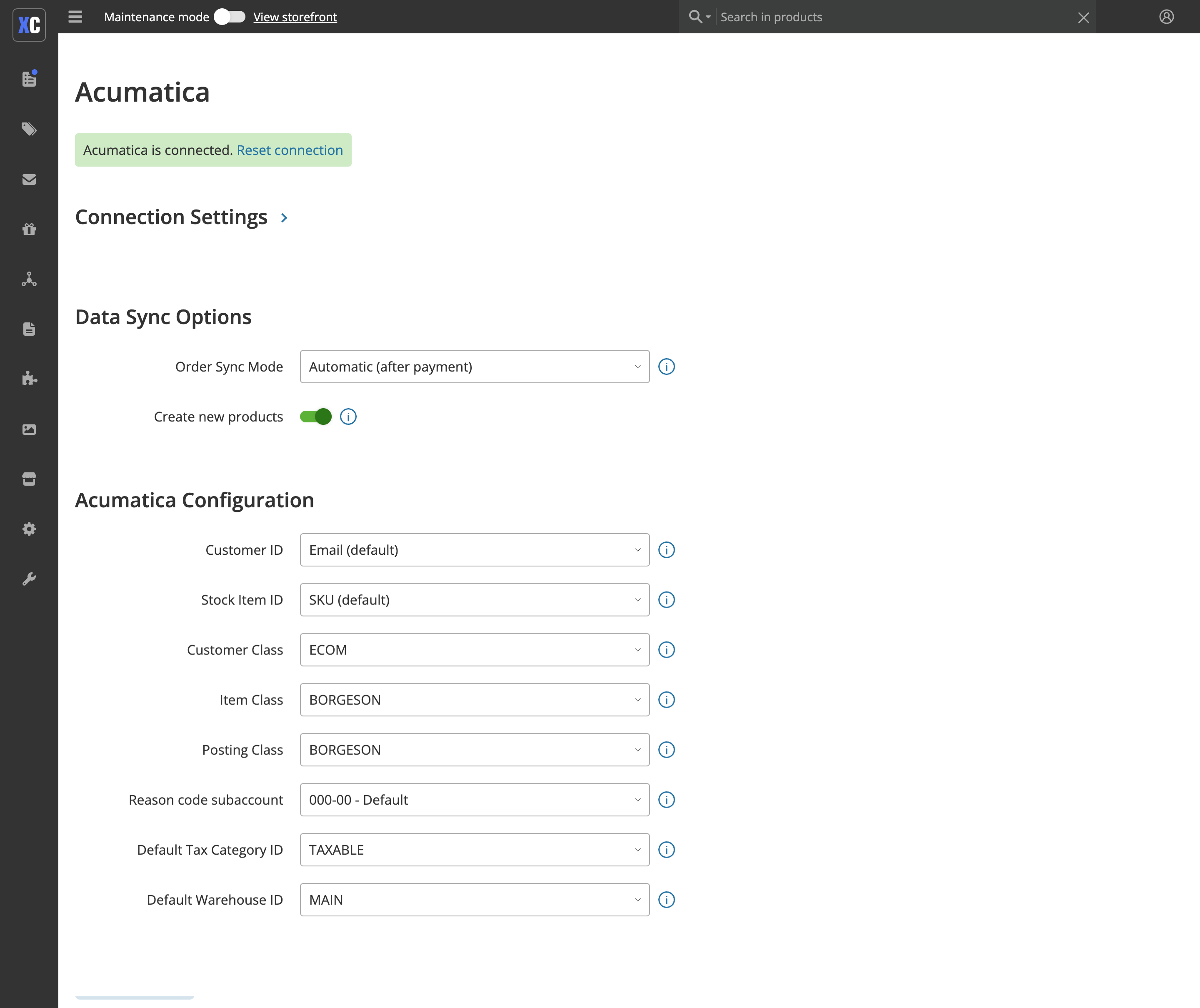 Designed with flexibility in mind, the integration is built on Acumatica's default data schema (eCommerce 24.200.001 endpoint) but is highly extensible to accommodate custom data mapping, complex tax settings, and unique warehouse configurations.